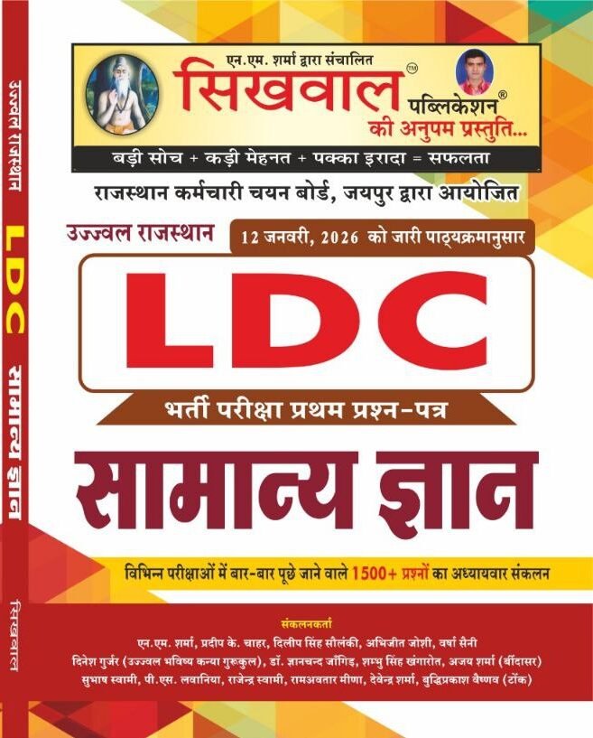 Sikhwal Publication द्वारा प्रकाशित LDC सामान्य ज्ञान (Samanya Gyan) पुस्तक राजस्थान कर्मचारी चयन बोर्ड (RSMSSB) की LDC / Clerk Grade-II भर्ती परीक्षा के प्रथम प्रश्न-पत्र की तैयारी के लिए विशेष रूप से तैयार की गई है। यह पुस्तक 12 जनवरी 2026 को जारी नवीनतम पाठ्यक्रम के अनुसार अपडेटेड है।